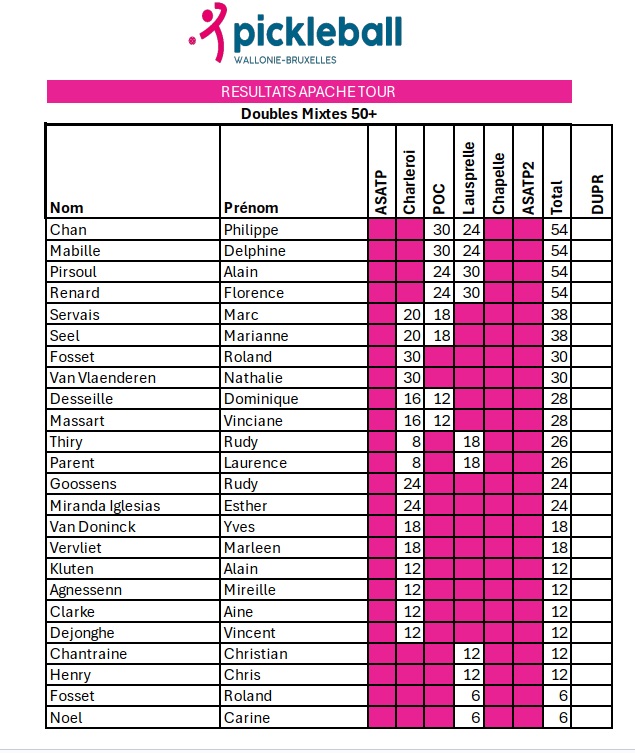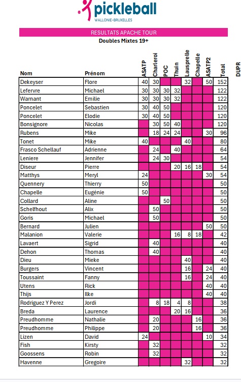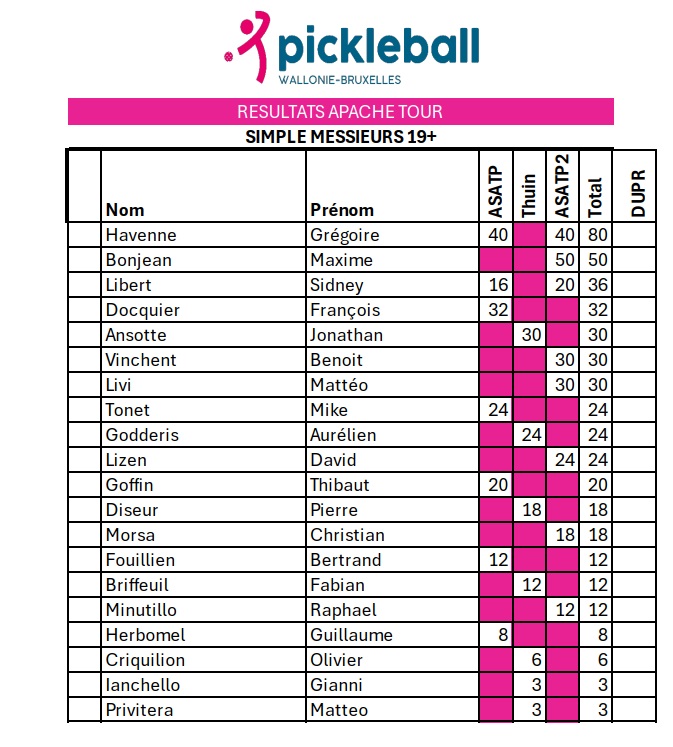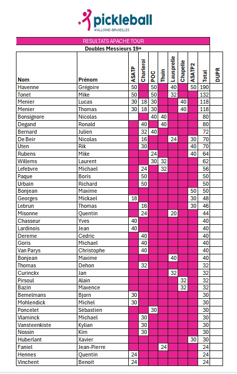 Le Masters de l’Apache Tour se tiendra le week-end du 21 au 23 novembre au Centre Sportif de Seilles.