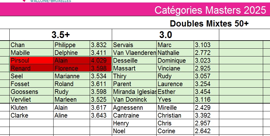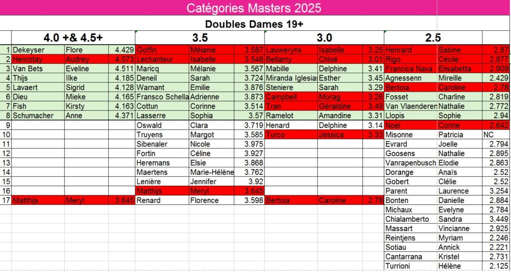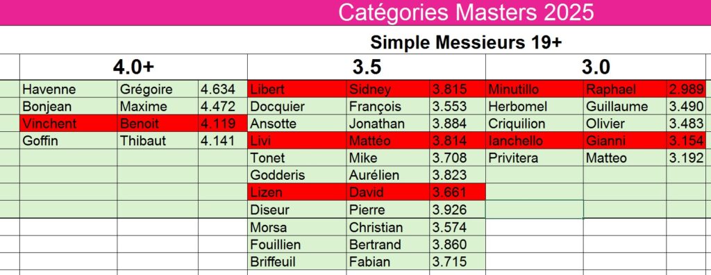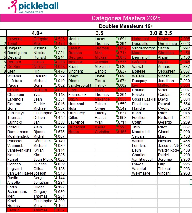 Vu les nombreuses demandes de joueurs « non prioritaires » nous avons décidé d’ouvrir le Masters à tous les joueurs qui sont présents sur les différentes listes. Ils et elles peuvent donc s’inscrire suivant les règles suivantes :