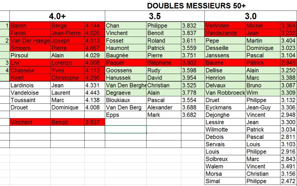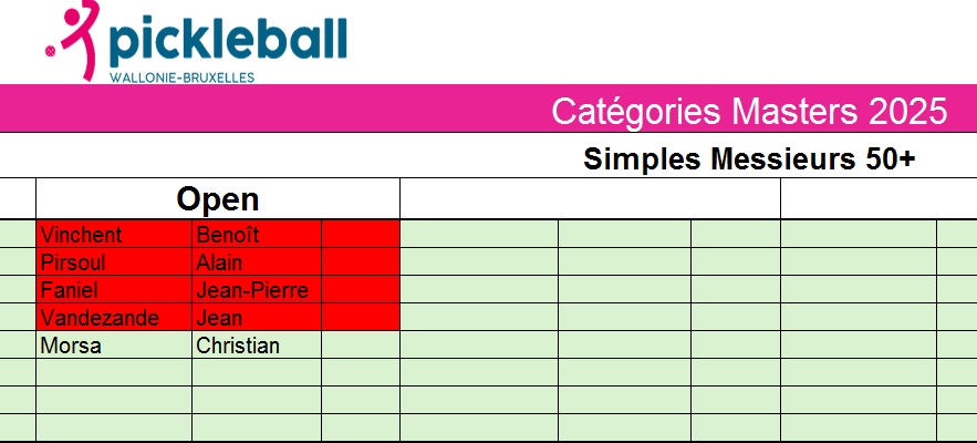 - En vert clair, les joueurs prioritaires qui ne se sont pas (encore ?) inscrits.