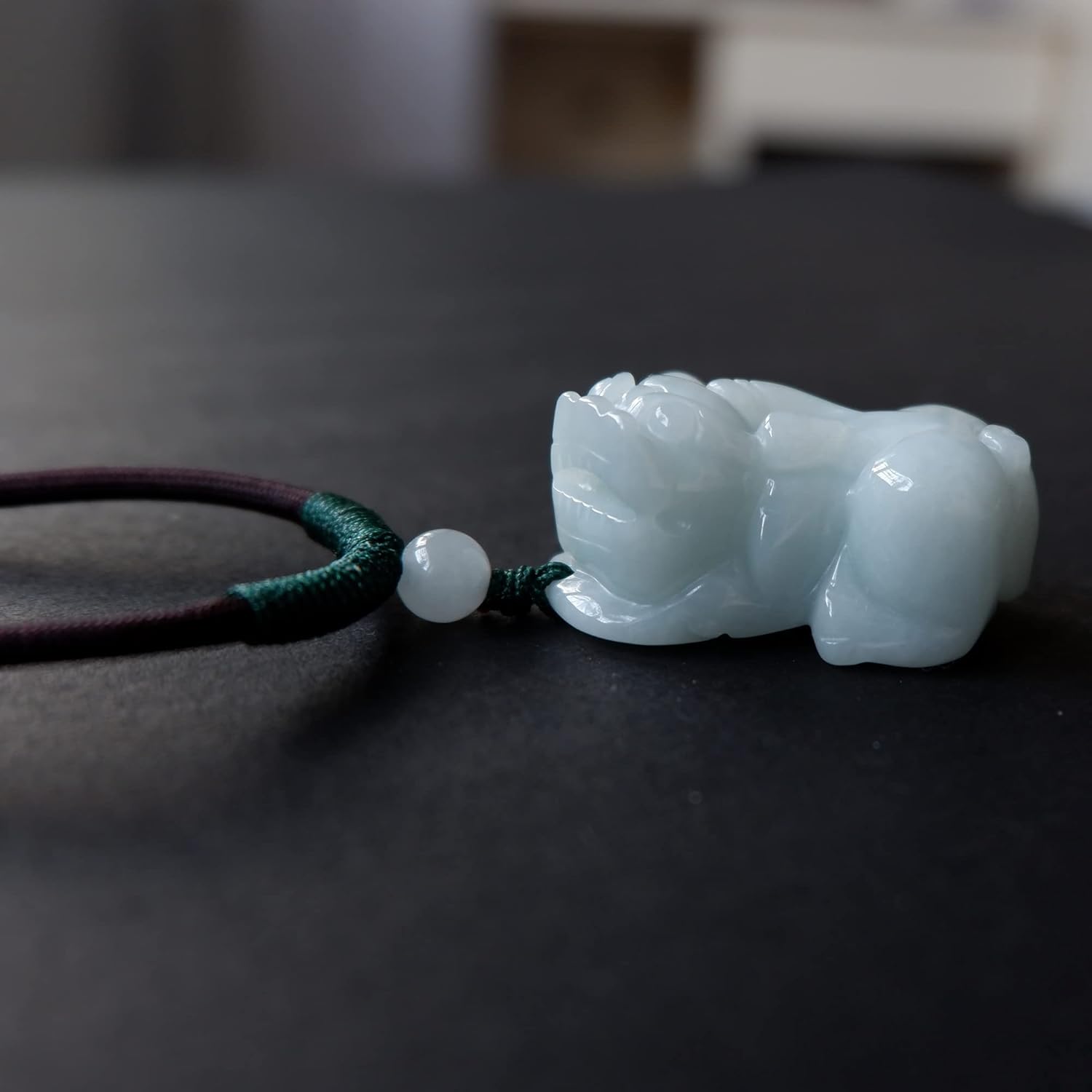 This is an emerald pixiu pendant made of emerald green natural jade, the color is very beautiful and full of spring breath. Pixiu (Bravetroops) means "Heaven Lu Beast" is blessing from God, is a kind of fierce auspicious beast recorded in ancient Chinese books and folk myths and legends. It is specially designed to protect the wealth of the emperor, and it is also a symbol of the royal family. People believe that wearing jewelry with the image of the Pixiu can bring wealth and good feng shui. This Pixiu pendant is a regular size, suitable for both men and women. Comes with a handmade lanyard, with natural jade beading and hypoallergenic rope, which is safe and healthy for the wearer's skin. We are good at hand-carving and weaving lanyards, we pay great attention to the matching of carvings and lanyards, we strive to make every piece of jade into beautiful jewelry, and we do our best to make details so that they are more like a work of art, to suit the the wearer's preference. Hope our jewelry can make the wearer healthier and bring wealth, good luck and good feng shui.